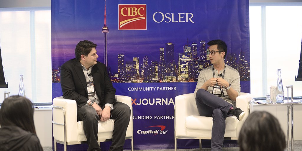 Kerry Liu (right), founder and CEO of Rubikloud, shares his career experiences in a fireside chat with Chad Bayne, founder and Co-Chair of Osler’s Emerging and High Growth Companies Practice Group. Photo credit: DX Journal.