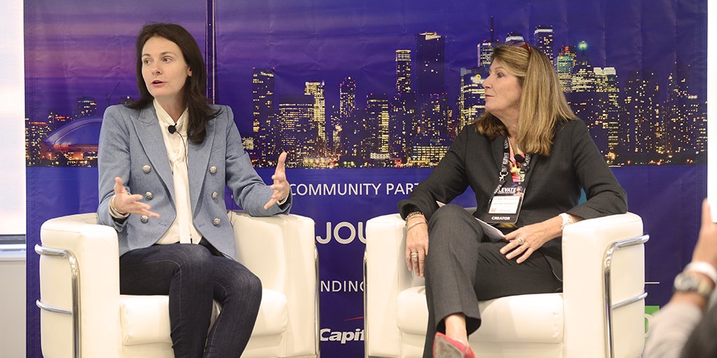 Michelle Zatlyn (left), co-founder and COO of Cloudflare, participates in a fireside chat with Osler’s Chief Client Officer, Colleen Moorehead, at Elevate ScaleUp. Photo credit: DX Journal.