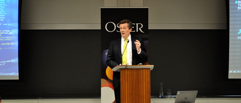 Mayor Tory thanked Osler for hosting the event and talked about the underrepresentation of women in the tech sector, which he said was “not right” and “not smart, because we are denying ourselves, by not having in those rooms, the full pool of talent that we have access to in the city.” In order to help encourage a greater representation of women in the tech space, he pledged to prioritize supporting events that show a “real commitment to encouraging diversity in the people they have on their panels … and have made a real effort to make sure they include women and people from all diverse backgrounds.”
