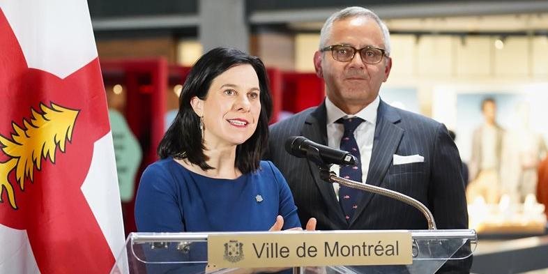 Shahir Guindi, coprésident national d'Osler (droite), et la mairesse de Montréal Valérie Plante. (Photo : Sylvain Légaré)