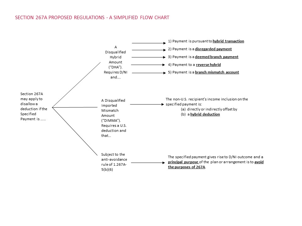 - des règles régissant l’application du paragraphe 267A aux « arrangements structurés » – lesquelles pourraient de manière générale élargir la portée du paragraphe 267A aux paiements déterminés effectués à des parties non liées lorsque (i) l’asymétrie est prise en compte dans les modalités de l’arrangement conclu par les parties non liées; ou lorsque (ii) compte tenu de tous les faits et circonstances, l’asymétrie constitue l’objectif principal de l’arrangement;